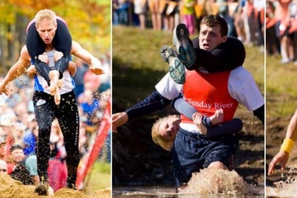 TOP 2. Finland’s "Wife-Carrying" Race Gives Beer as a Prize (Based on the Wife’s Weight!)